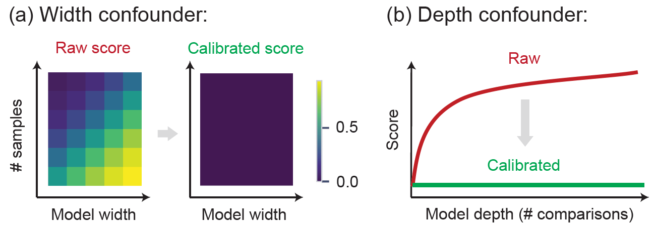 - Depth confounder: common reporting practices search over many layer pairs and summarize with a max / top-k aggregate. The more comparisons you make, the higher the expected maximum becomes, even under no relationship.
