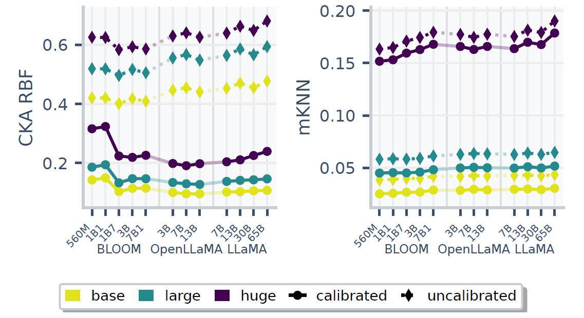 These effects can make larger (wider/deeper) models appear more aligned simply because the measurement baseline shifted. So before concluding “models converge”, we need to fix the baseline.